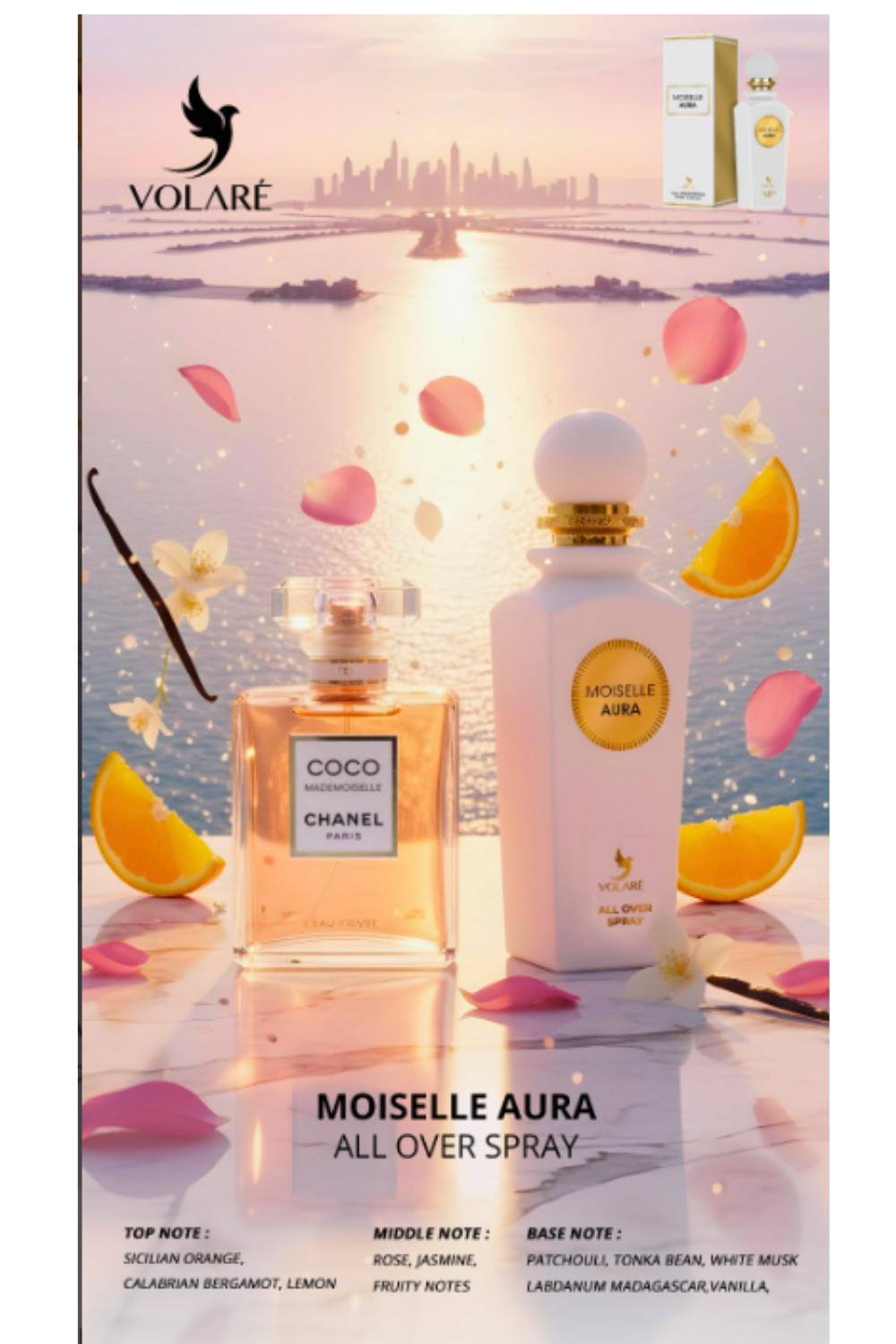 Dès l’application, Volaré Moiselle Aura spray parfumé pour le corps dévoile des notes d’agrumes fraîches. Elles apportent une sensation immédiate de légèreté. Ensuite, le cœur floral se développe avec élégance. Les fleurs s’expriment avec douceur. De plus, elles apportent une touche raffinée et féminine.