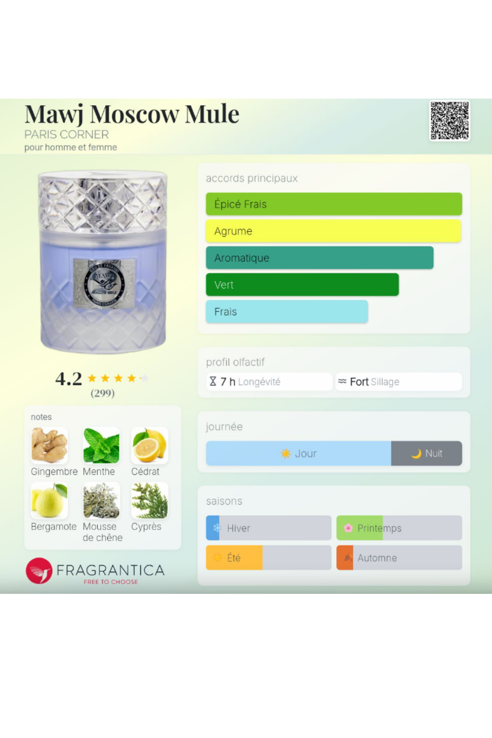 Découvrez Moscow Mule Eau de Parfum, une fragrance moderne et audacieuse qui capture l’esprit d’un cocktail iconique. Ce parfum unique associe fraîcheur, énergie et sensualité, offrant une expérience olfactive vivifiante et inoubliable.