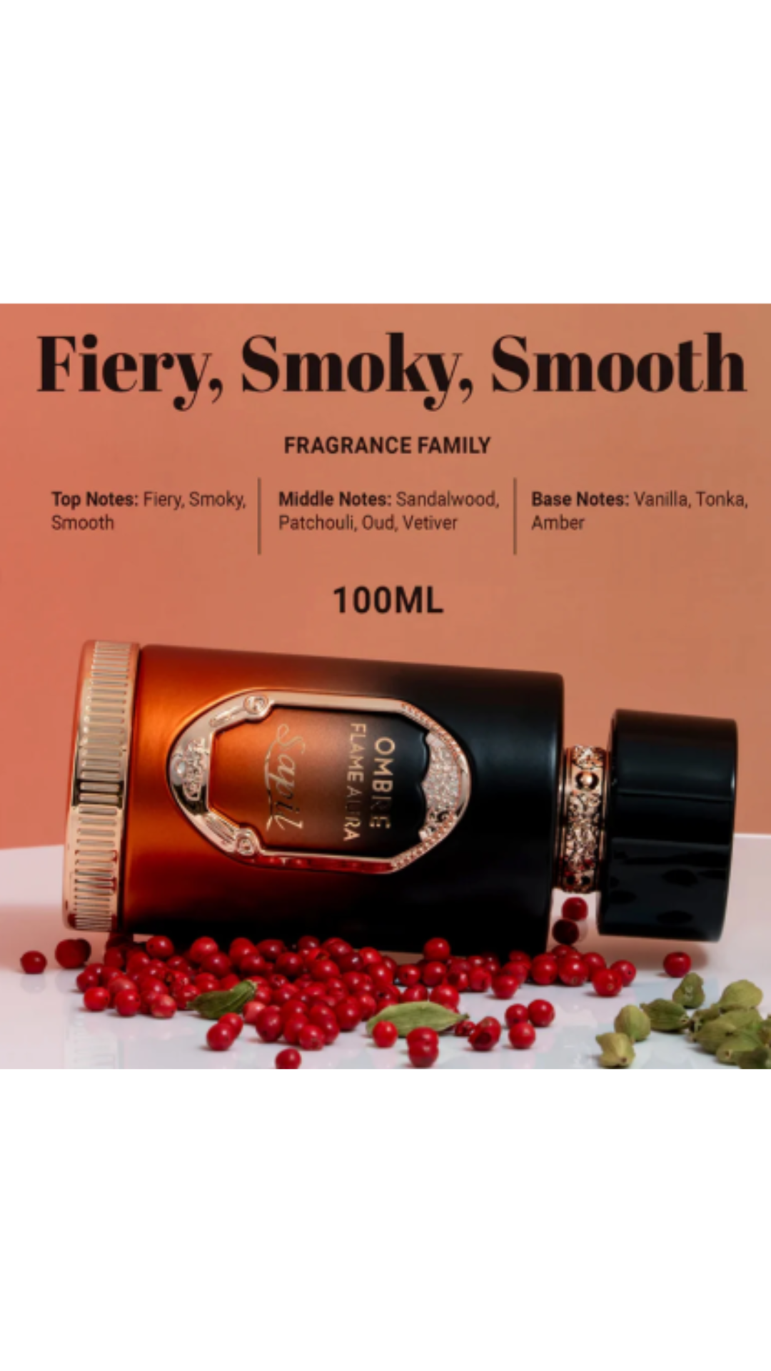Les notes chaudes et boisées reflètent la chaleur de la flamme, tandis que les épices orientales ajoutent une touche dynamique, créant un parfum à la fois audacieux et invitant.