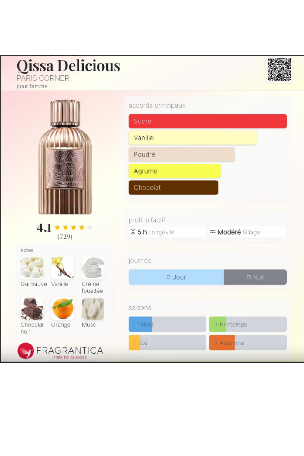 - Notes de tête : chocolat noir, orange, crème fouettée