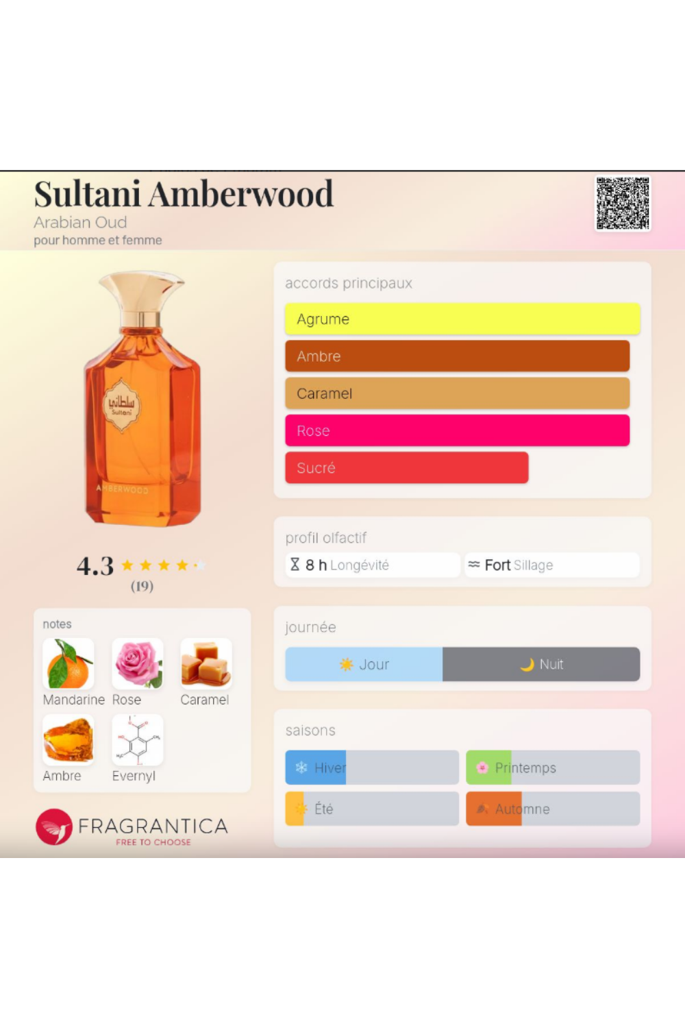 - Notes de cœur : Caramel ; Notes Boisées