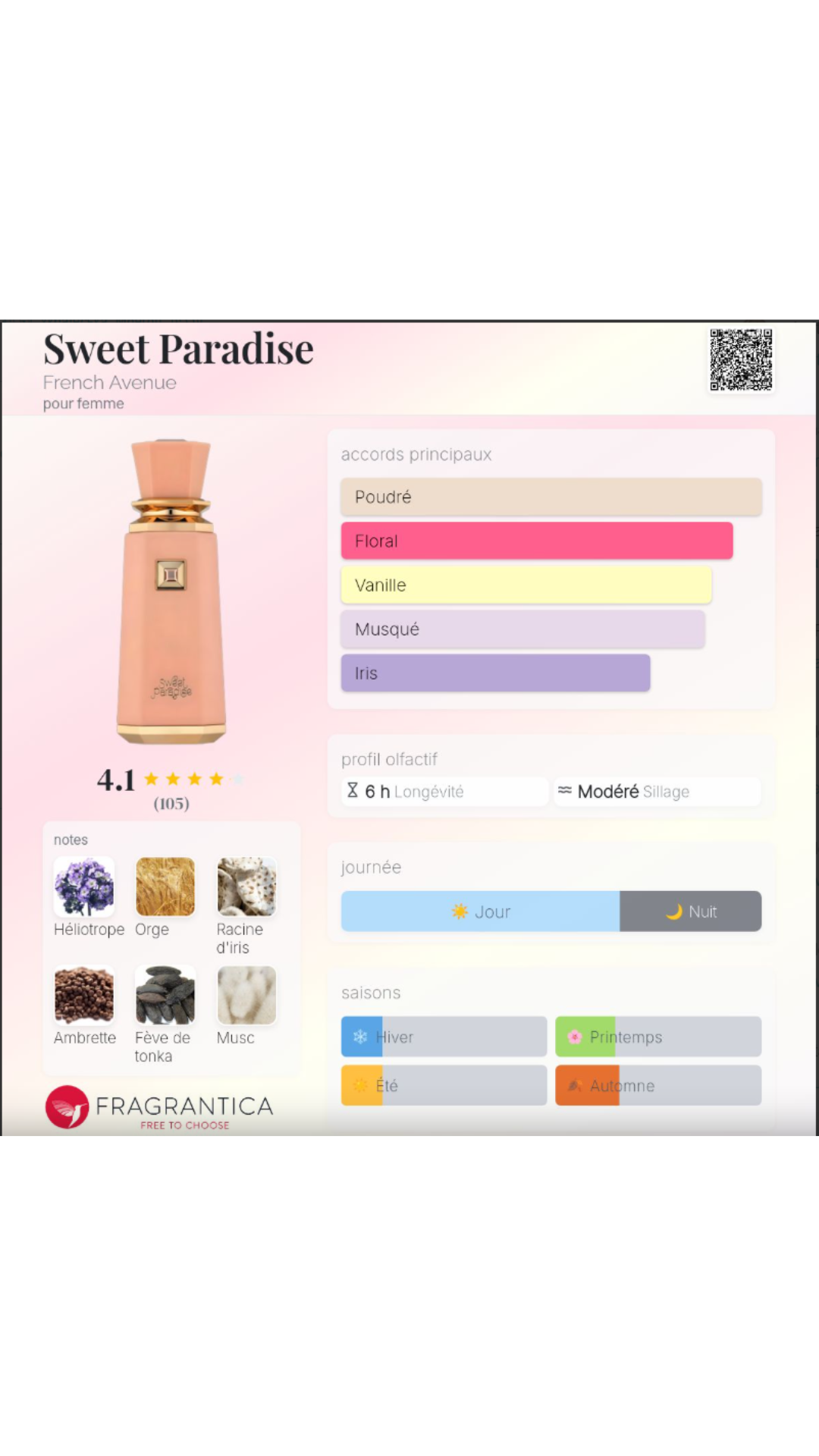 En résumé, Sweet Paradise incarne la joie, la douceur et la sophistication moderne, offrant un parfum irrésistible et lumineux pour toutes les occasions.