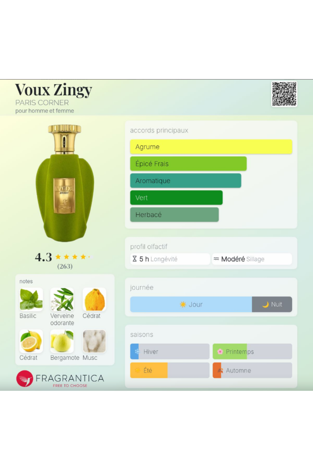 - Notes de tête : Basilic, Bergamote, Cédrat d’Italie, Citron.